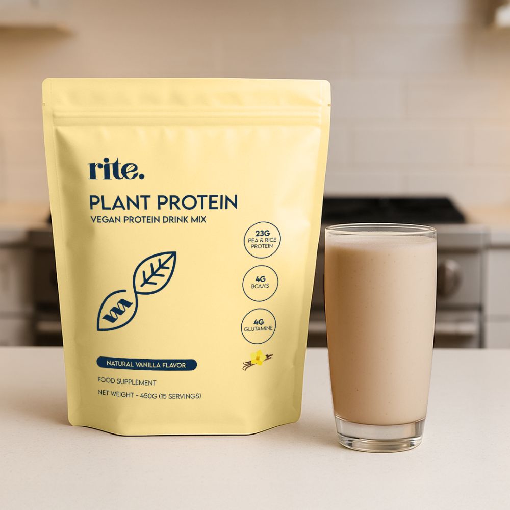 100% vegan blend of non-GMO pea & rice delivers 23g of protein, 9 essential amino acids, with 4g BCAAs and 4g L-Glutamine for metabolism, muscle recovery, satiety, and gut health support.